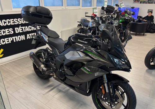 Très belle moto Modèle performance avec en option : Bulle fumé Silencieux Akra Par carter top block Protection de réservoir Support et top case 47L Kawasaki Réviser et garantie constructeur 05/2028